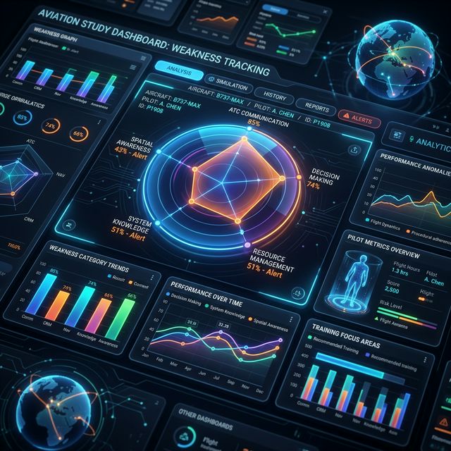 Altitude maps every missed question to its ACS or LSC code and tracks mastery per topic over time. The radar surfaces exactly where you're strong and where you need focused reps — so you stop re-studying what you already know.